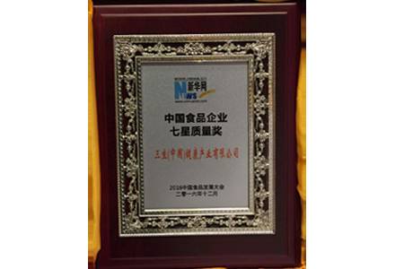 三生(中国)荣获“2016中国食品企业七星质量奖”