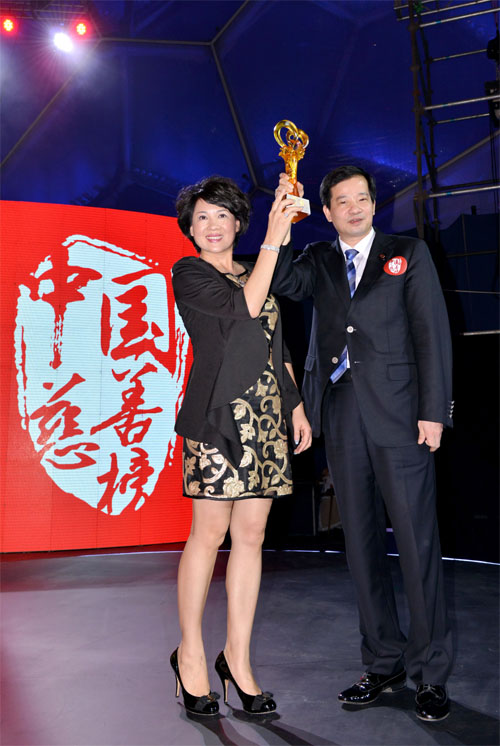 陈怀德先生八届荣膺“中国十大慈善家”称号。图为陈怀德、胡静伉俪荣膺“2014年度中国十大慈善家”