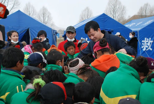 玉树地震后,陈怀德先生第一时间前往玉树看望福利院的孩子们。
