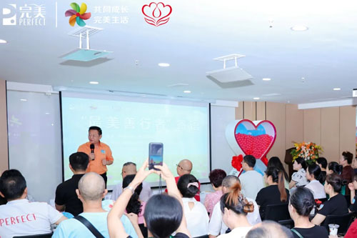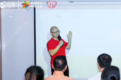 完美重庆分公司总经理冷涛为活动开场致辞。他感谢每一位在高温下仍坚持前来奉献爱心的完美创业伙伴,正是因为完美公司热心公益的善举打动着每一位完美创业伙伴,才会在一方有难,八方支援时,看到更多完美人奔走的身影,这是完美大爱传承的力量。