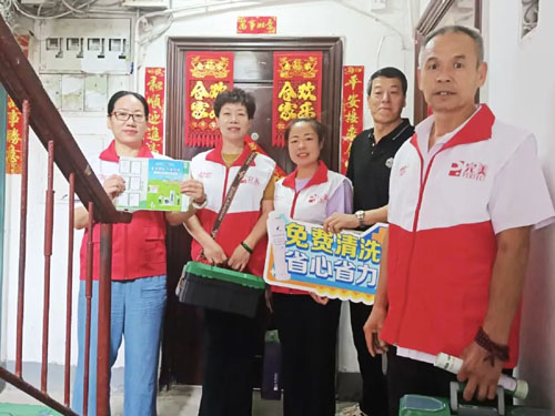 活动现场,完美义工结合荟净多效泡沫清洁剂的产品使用讲解,为社区居民科普定期清洗空调和洗衣机等家电的必要性,同步演示了空调清洗的步骤和注意事项。随后为社区内居住的军烈家属、退伍军人、空巢老人、生活不便的残障人士、孤寡老人等需要重点关爱帮扶的家庭进行空调等家具电器清洗,并为他们提供细心专业的服务。