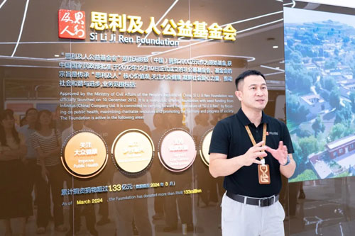 在企业社会责任展厅,无限极企业社会责任高级经理、思利及人公益基金会秘书长黄嘉辉,以“‘五个一’社会责任体系”为切入点,向参访团展示了无限极在践行社会责任方面的实践案例与成果。