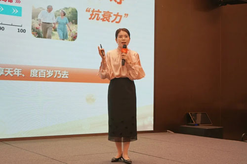 中华养生,根源抗衰。广东分公司讲师黄康容发布了抗衰健康解决方案,详细介绍了融合传统养生智慧与现代科技的抗衰新品松延膏,带领大家破解抗衰密码,深入了解新品的魅力。