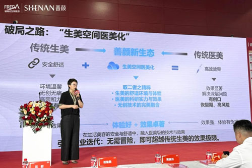 9月4日,善颜品牌主理人崔秋霞于论坛区发表了题为《美业生态3.0:无创时代,应势而生》的专题演讲,深度剖析了当前美业市场效果瓶颈与医美高门槛并存的困境,系统阐述善颜“生美空间医美化”战略的底层逻辑与发展愿景。