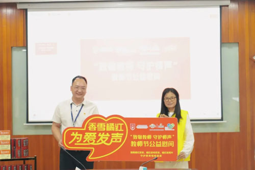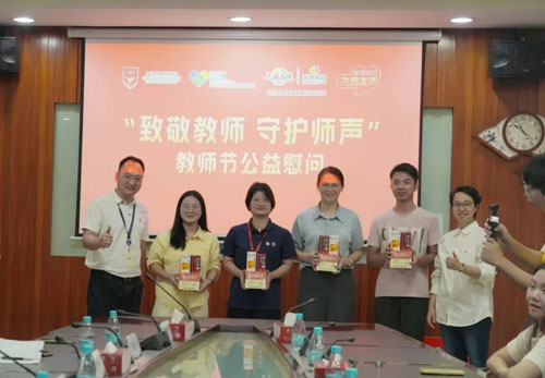 教师群体因职业特性,长期面临用嗓过度、粉尘刺激等问题,急慢性咽喉炎等咽喉疾病已成为教师群体的常见困扰。香雪制药多年来持续与广东省岭南教育慈善基金会开展“香雪橘红,为爱发声”关爱教师公益活动,用专业健康物资为教师的“金嗓子”保驾护航。