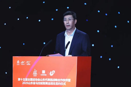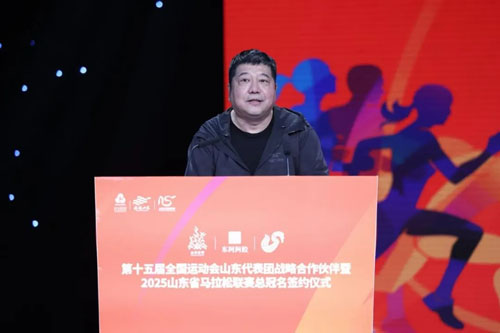 栾风岩在致辞中表示,此次合作是山东体育强省建设的重要举措。山东省体育局始终以“走在前、挑大梁”为目标,致力于构建现代化体育产业体系。东阿阿胶作为中华老字号企业,其深厚的中医药文化底蕴与科技创新能力,将为运动员备战全运会提供精准的健康保障,同时通过马拉松赛事的辐射效应,带动全民健身热潮,助力健康山东建设。