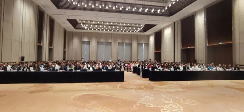 9月26日,活动进入核心环节 —— 旅游研讨会。上午8时许,国内外游代表有序入场,伴随着编钟与交响乐融合的《盛世华章》,董事长冯柏乔博士、董事总经理刘淑莲博士携高管团队登场,全场掌声雷动。主持人以“龙门佛光映照千年智慧,洛河碧波激荡时代潮声” 开篇,将金科十七载发展历程与洛阳古都文脉紧密联结,强调本次研讨会既是对精英团队的荣耀表彰,更是 “承载健康环保使命” 的初心践行。