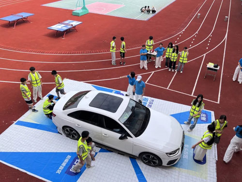活动中,孩子们学习识别车辆盲区,了解与车辆保持安全距离的重要性。在安全带使用教学与安全头盔接力赛等互动环节中,孩子们在实践中学到了宝贵的安全知识,进一步增强了在不同场景下的安全意识。