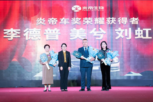 在轿车奖表彰环节,炎帝生物常务副总裁王玉兰博士为李德普、美兮、刘虹云三位市场精英颁奖及事后心得分享。
