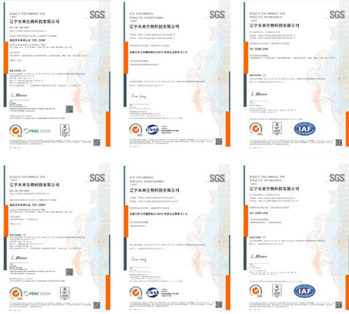 金秋九月,捷报传来!辽宁未来生物科技有限公司在原有ISO 9001、ISO 22000、HACCP 体系认证基础上,历经全球权威认证机构SGS的严苛审核,获得FSSC 22000 体系认证,为产品拓宽国际市场奠定基础。同时获得由SGS颁发的 ISO 9001、ISO 22000、 HACCP 体系证书,正式形成四大核心体系认证矩阵,进一步拓宽了公司对接国际市场的 “通行证”。