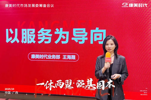 紧接着,康美时代业务总监王海霞,聚焦服务与规范两大模块,阐释高效售后如何赋能市场。王总通过正反案例对比,阐明“规范就是生产力”的理念,并介绍“30天内无忧退换”与“AI客服售后体系”两大服务升级,旨在实现售后流程透明高效,提升客户满意度与伙伴业务效率。