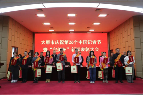 一撇一捺,一帧一画,记录时代风云。在第26个中国记者节到来之际,11月7日,来自太原市新闻战线的100余名代表相聚在太原日报社新闻大厦举行座谈会,共同庆祝属于广大新闻工作者的节日。座谈会上,太原市第23届“十佳”新闻工作者和2024年度优秀新闻工作者、新闻工作先进单位受表彰,第34届太原新闻奖获奖作品公布。太原市委宣传部主持日常工作的副部长赵德学、太原市新闻工作者协会主席孟德东等领导出席了活动。完美山西分公司为新闻工作者赠送慰问品。