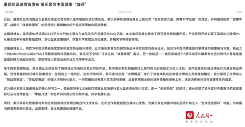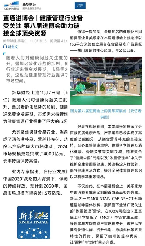 第八届中国国际进口博览会圆满闭幕。美乐家以“全球首发首秀新品”、“展品变商品、商品变爆品”、“在中国,为全球”、“进博会上双签约”等热门话题吸引了公众及包括中央电视台、新华网、人民网、中新网、中国经济网、上海电视台、文汇报、解放日报等媒体的广泛关注。美乐家也将坚定信心,奔赴更好的未来。