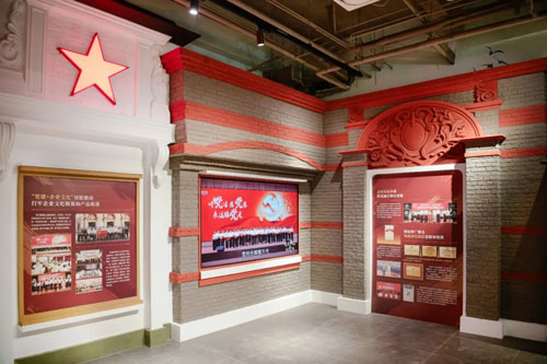 “红色凝聚力展厅”以老上海石库门建筑为背景,讲述民族健康产业红心向党的坚定信仰和“一切为了人民健康”的使命担当。