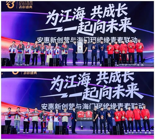 安惠新创营的学员们与珂缔缘足球俱乐部总经理助理兼副总经理吴双、主教练高万国、守门员教练池文一及球员代表共同开启一场以“为江海,向未来”为主题的青春联动。双方互换礼物,互赠友情。陈骏骅主任表示,安惠与珂缔缘携手,不仅是合作,更是青年共创的新起点。希望双方能凭借年轻的事业力量,在传承中不断创新,让青春成为驱动产业进步的力量。