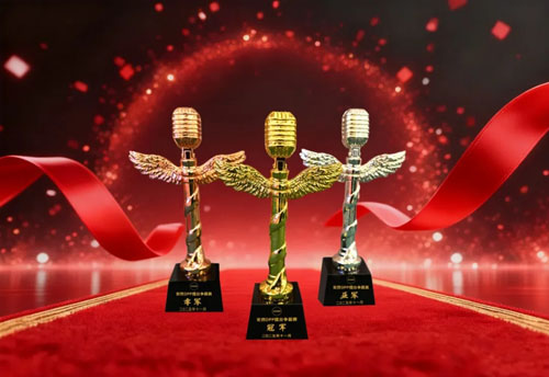 奖杯中央立体浮雕金色话筒,彰显“以声载道”的核心使命,流线型翅膀纹路寓意思想借语言共振传递;,尽显“金声玉振”的感染力。奖杯中央立体浮雕金色话筒,彰显“以声载道”的核心使命,流线型翅膀纹路寓意思想借语言共振传递;尽显“金声玉振”的感染力。