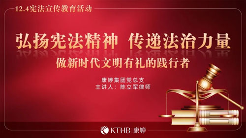 2025年12月4日是我国第十二个国家宪法日。为深入贯彻习近平法治思想,弘扬宪法精神,树立法治信仰,加强法治宣传和教育,进一步普及法律知识,提升全员尊法、学法、守法、用法的意识与能力,在国家宪法日暨全国法制宣传日来临之际,康婷集团党总支于12月3日组织开展了“弘扬宪法精神 传递法治力量 做新时代文明有礼的践行者”普法宣传活动。本次活动由法律顾问陈立军律师主讲,全体党员、学党章小组成员踊跃参加。