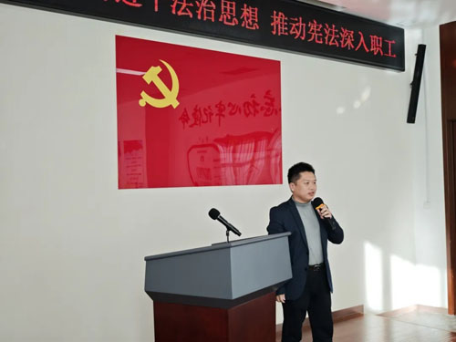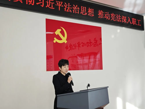 康婷集团副总经理、工会主席李莉女士致辞。她代表康婷集团对各级工会领导的莅临表示热烈欢迎,介绍了康婷集团自2020年起,连续6年通过多种形式开展法治宣传教育的实践成果。康婷集团始终将职工法治素养提升作为企业文化建设的核心内容,每年宪法日主题教育活动的开展,有效筑牢了职工尊法、学法、守法、用法的思想根基,推动了康婷集团整体精神文明风貌的建设。