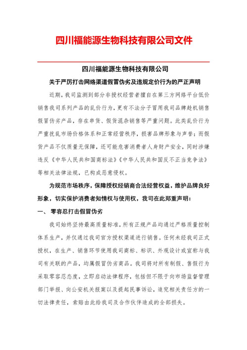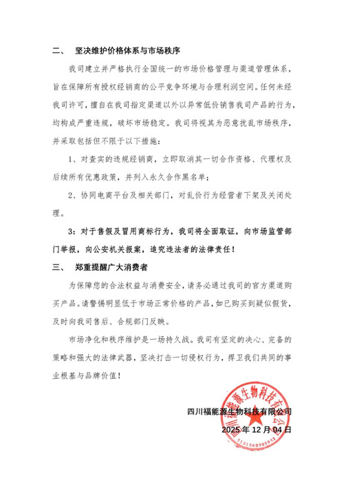 福能源声明严打网络渠道假冒伪劣及违规定价