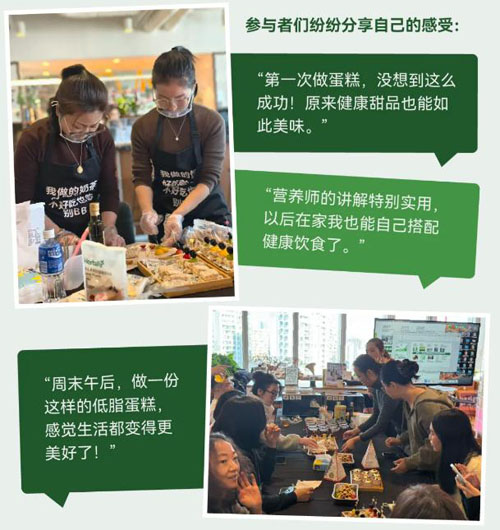 现场香气弥漫,参与者们在专业老师的带领下,亲手制作属于自己的健康蛋糕, 在“有趣又有料”的体验中,轻松感受健康生活的美好。