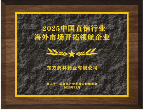东方药林药业有限公司凭借其系统、稳健且富有成效的国际化拓展实践,荣膺 “2025中国直销行业海外市场开拓领航企业”。