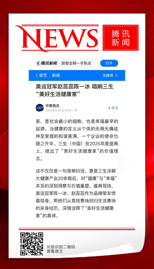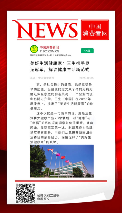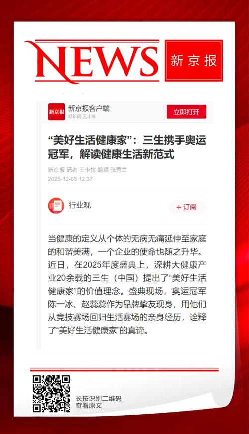 “美好生活健康家”不仅是三生对消费者的庄严承诺,更是其未来发展的行动指南。在奥运冠军的助力下,在AI数智科技的赋能下,三生将继续秉持初心,坚守“自尊敬人,惠人达己”的核心价值观,永远以梦想为翼,以使命为舵,通过匠心产品和专业服务,帮助更多家庭实现健康梦、幸福梦,共同绘就一幅健康中国的美好画卷。