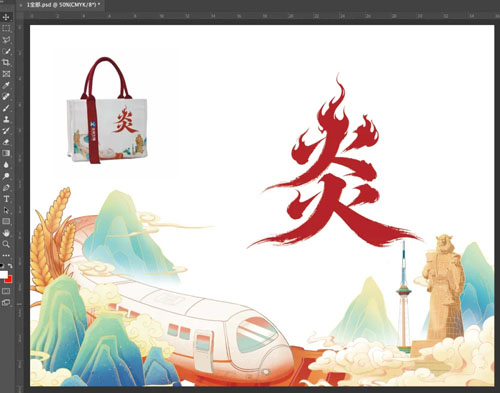 通过融合山川、云纹、智轨与炎帝像等地域元素