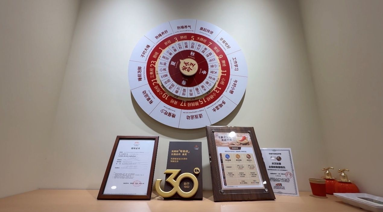 据介绍,养生客厅内部采用“三调养、四合理”理念设计,在空间体验上全面升级:客厅融合中式美学的门头、品牌墙与展陈设计,营造出浓厚的中华养生文化氛围;集产品体验、智能健康检测、文化沙龙于一体,提供“祛湿调理”“脾胃调养”等定制化养生方案,并以全国标准化服务流程保障服务体验。
