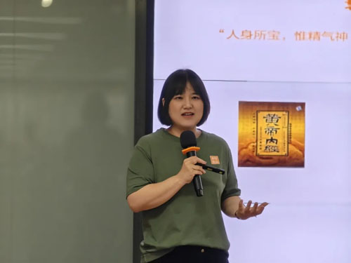 随后,大家走进抗衰小课堂,河北分公司讲师张晓玲为大家介绍了融合中医智慧与现代科学技术的抗衰新品——松延膏的产品特色与优势,受到了广泛好评。