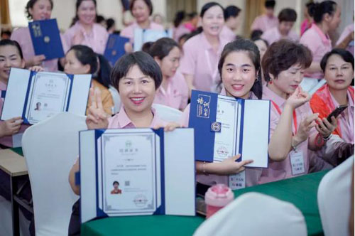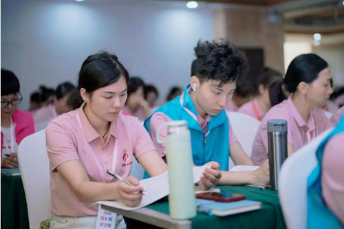 值得一提的是,为让学员更好转化知识为实践,三八妇乐在培训落幕时准备了丰富赋能课程。“蝴蝶计划” 介绍清晰勾勒职业发展路径,“四期健康管理 + 四字理论” 进一步完善专业知识体系。更有三八妇乐聚星系统创始人罗兰香与七星董事陈佳琪带来市场分享,以真实案例拆解行业机遇,助学员明晰未来落地工作规划。此外,培训还设有 “志愿者宣誓” 环节,为整体流程增添了庄重意义。