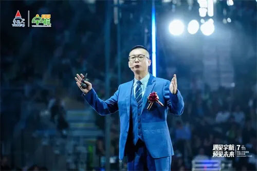 庆典开场,内蒙古宇航人高技术产业有限责任公司董事长于晓辉先生登台致辞。他指出,七年来宇航商城从无到有、从小到大,每一步都走得坚实有力。面对激烈的市场竞争,宇航商城始终坚守初心,以高品质产品和优质服务赢得市场认可。未来,宇航商城将持续加大投入,优化运营模式,为市场伙伴提供更强大的支持,携手共创辉煌。