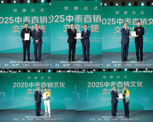 随后,他为王浩、汪国胜、李翔、于晓萌、王晓峰五位市场代表颁发“2025中泰直销文化交流大使”证书,鼓励他们在未来继续发挥桥梁作用,推动中泰直销文化的深入交流。