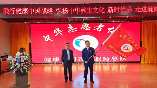 活动现场还举行了庄严的授旗仪式。内蒙古分公司总经理孙涛将“健康中国志愿服务支队”旗帜授予通辽市健康顾问志愿者代表,并与全体志愿者合影。