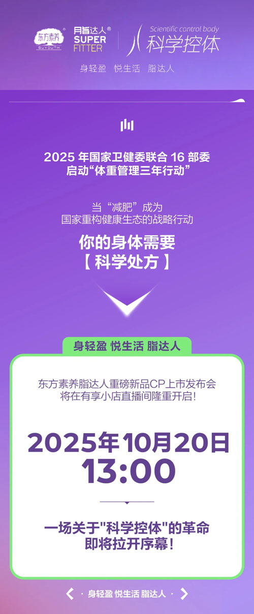 科学控体 三生全新脂达人新品发布会即将直播