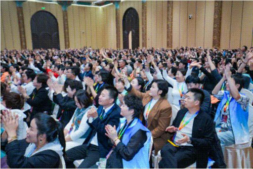 现场参会代表热情高涨,大家挥舞着盛会特别订制的围巾汇集成一片欢乐的海洋