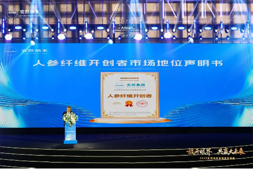 本次人参纤维技术发布,属全球首次。此项技术不仅斩获“人参纤维开创者”称号、领航产业发展,更获评“国际先进”。尚普咨询集团创始合伙人兼CEO邓新宇先生亲临授牌。