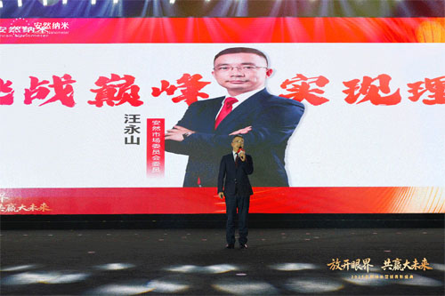 回望这一年,每一步跨越都离不开方向的指引,每一份成就都凝聚着领航者的远见。在全场伙伴的热切期盼中,安然集团副董事长兼安然纳米营销、研发总裁刘金坤先生登台致辞,与所有伙伴共同开启这场荣耀盛宴。