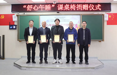 活动伊始,参加活动的领导嘉宾一行参观了校园建设和学生午休课桌椅的使用情况。从过去孩子们“趴桌睡”的局促与不适,到如今“躺着睡”的舒适与放松,这批“可躺式”课桌椅承载着大爱与希望,为孩子们营造了更加健康舒适的学习环境,也为安化教育高质量发展注入了温暖而坚实的力量。活动现场,少先队员们一首《润泽桑梓 赋能教育》诗朗诵表演,用行动向爱心企业和人士表达了诚挚的感谢。随后,安化县烟溪镇人民政府党委书记谢昂在致辞中感谢了以绿之韵为代表的诸多爱心企业、商会与爱心志愿者们对学校及孩子们的关爱与帮助。现场捐赠环节,长沙市安化商会会长、绿之韵集团董事长胡国安与其他爱心商会、企业代表现场爱心举牌。安化县政协党组书记、主席胡能华为爱心企业颁发捐赠证书。