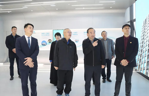 调研组一行首先参观了绿之韵集团数智化科技展厅。展厅设计深度融入企业“水之道”文化内核,以水的流动与滋养为叙事脉络,融合东方哲学与西方技术,展现企业的发展初心与文化积淀。展厅运用数字互动技术,打造沉浸式智慧展示空间,多维度呈现绿之韵的企业文化、发展历程、党建成果、公益实践、产品体系、科研布局与战略愿景。胡国安董事长向调研组详细介绍了企业的发展脉络,展厅内陈列的最新科技成果与创新产品,生动体现了绿之韵在大健康产业的前沿探索与扎实积累。