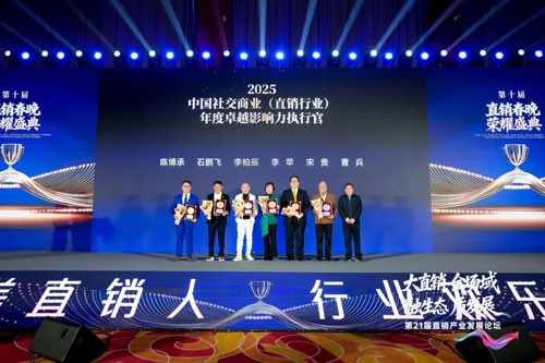 绿之韵集团数字化鸿源国际系统联合创始人成雪辉,道缘国际系统联合创始人徐成浩、杨飞荣获“2025中国社交商业(直销行业)年度风云人物”;