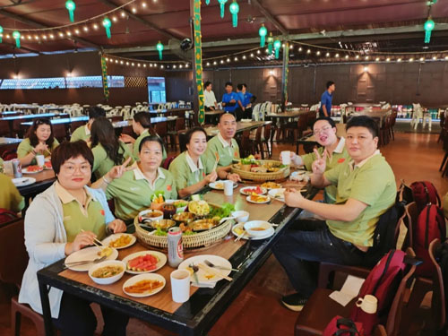 傍晚时分,我们来到了爽泰庄园。这里绿树成荫,花香四溢,仿佛是一个世外桃源。安惠伙伴在这里感受泰式风情,享用帝王餐,跟大象互动,放浪漫花灯……大家欢声笑语不断,气氛热烈而温馨。