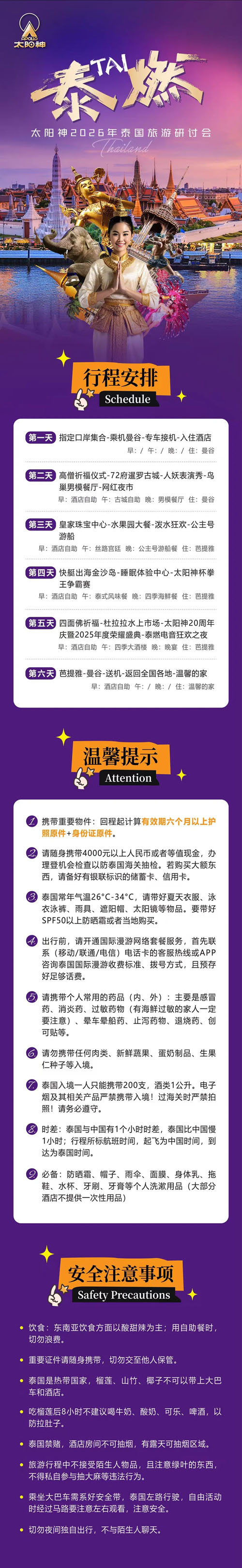 通知|太阳神泰国旅游研讨会行程安排来啦