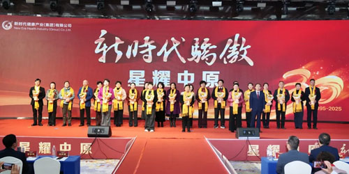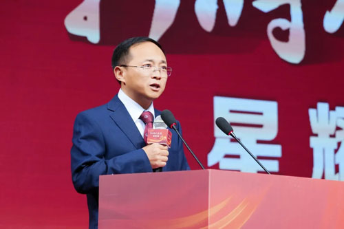 公司总经理助理刘兆喜向受表彰精英及全体新时代家人致以祝贺与感谢,他回顾了公司三十年来的发展成就,重点阐述了“十五五”战略发展规划,号召全体新时代人以三十周年为新起点,共同推动健康产业高质量发展。