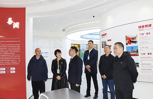 调研组一行先后参观了绿之韵中心数智化科技展厅和党建教育阵地。数智化科技展厅以企业独特的“水之道”文化为核心设计理念,巧妙运用水的流动性与滋养特质作为空间叙事主线,融合东方哲学智慧与西方先进技术,生动诠释了绿之韵的发展理念与文化传承,并通过数字化互动展示系统构建了一个集视觉、听觉、触觉于一体的沉浸式智慧体验空间。调研组在此全面了解了绿之韵的企业文化、发展历程、党建成果、公益实践、产品体系、科研创新与战略规划,胡国安董事长系统介绍了企业的发展脉络,展厅内展示的最新科研突破与创新产品系列,充分彰显了绿之韵在大健康产业的前沿布局与深厚积累。在党建教育阵地,刘云书记向调研组汇报了企业非公党建的特色成果。绿之韵党组织自2006年成立党支部后,历经多年发展,已构建起以党委为核心、工会与公益基金会协同的新格局。企业通过推进“三色、三有、三亮”工程及“指导式、责任式、温情式”管理等系列创新举措,形成了特色党建品牌,有力推动了党建与发展的深度融合。