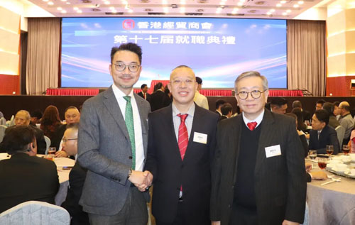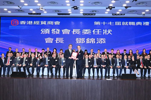 2026年1月15日,香港经贸商会第十七届就职典礼隆重举行。香港特别行政区商务及经济发展局局长丘应桦担任主礼嘉宾。香港中华厂商联合会会长卢金荣,香港工业总会主席林世豪,香港中华出入口商会会长贝钧奇,香港生产力促进局主席陈祖恒,香港立法会议员林振升、陈颖欣,老挝人民民主共和国驻港澳领事馆总领事AMMALA、大韩民国驻港澳领事馆总领事千成焕、全港各区工商联会长杨凯山,香港中小型企业总商会会长黎卓斌,香港中小型企业联合会会长郭志华等领导嘉宾应邀出席。香港长沙商会会长、香港立基环球有限公司董事长邓锦添当选香港经贸商会第十七届会长,香港长沙联谊会会长、绿之韵集团董事长胡国安当选副会长。与会嘉宾齐聚一堂,共庆盛事、共谋发展。