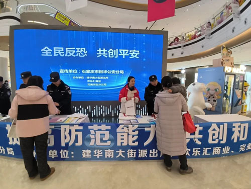 2025年12月27日,在《中华人民共和国反恐怖主义法》颁布十周年暨第十个全国反恐怖公众宣传日,裕华公安分局政保大队联合建华南大街派出所在欢乐汇开展“全民反恐 共创平安”主题宣传活动。 作为活动的协办单位完美河北分公司参与此次宣传活动,积极履行企业社会责任,分公司员工、经销商代表与公安干警一同投身公益宣传,传递平安正能量。