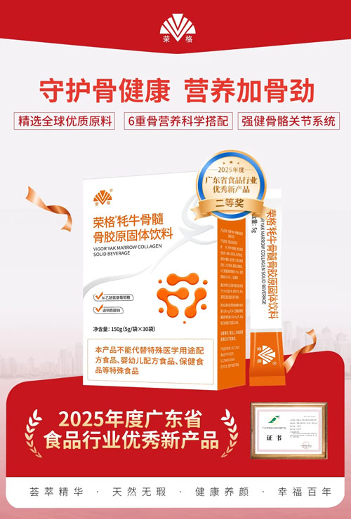 荣格®牦牛骨髓骨胶原固体饮料:精选优质牦牛骨髓,协同接骨木莓、乳矿物盐及多重肽类,富含磷、镁、锰、锌、铜等多种矿物质,营养结构丰富多元,满足现代人对健康营养的需求,助力骨骼关节健康。