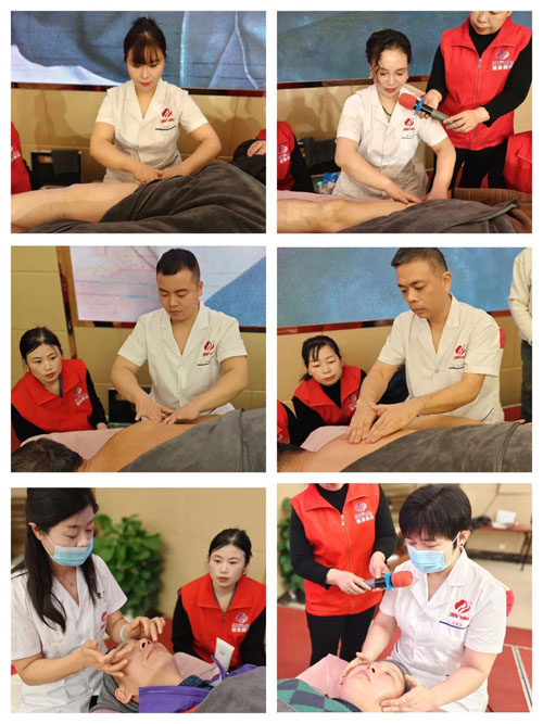 实操演示环节,优秀志愿者王娟玲、居籽含、孙静江、刘俊阳、张雪玲、郭桂华现场开展膝关节调理、肩周炎舒缓、美容护理等实操手法演示。他们娴熟运用青囊集中低频循经推拿康复技术,通过无创、舒适的调理方式,直观展现了青囊集技术在疼痛缓解、亚健康调理等方面的显著优势。