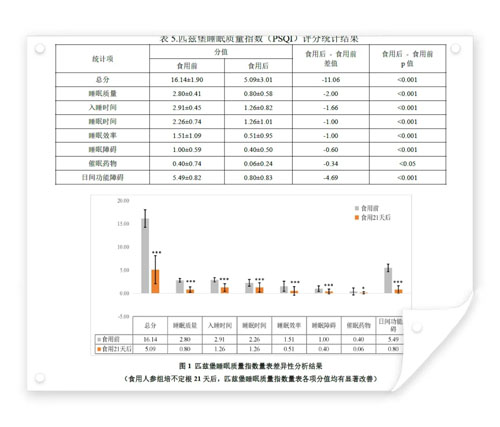 在改善睡眠的专项试验中,35名长期失眠的受试者每日食用4g人参组培不定根,21天后匹兹堡睡眠质量指数(PSQI)总分从16.14分降至5.09 分,入睡时间缩短1.66小时,夜间睡眠时长增加38.17分钟,日间功能障碍评分降幅达85.4%。同时,受试者的紧张、抑郁等消极情绪显著缓解,精力明显提升。