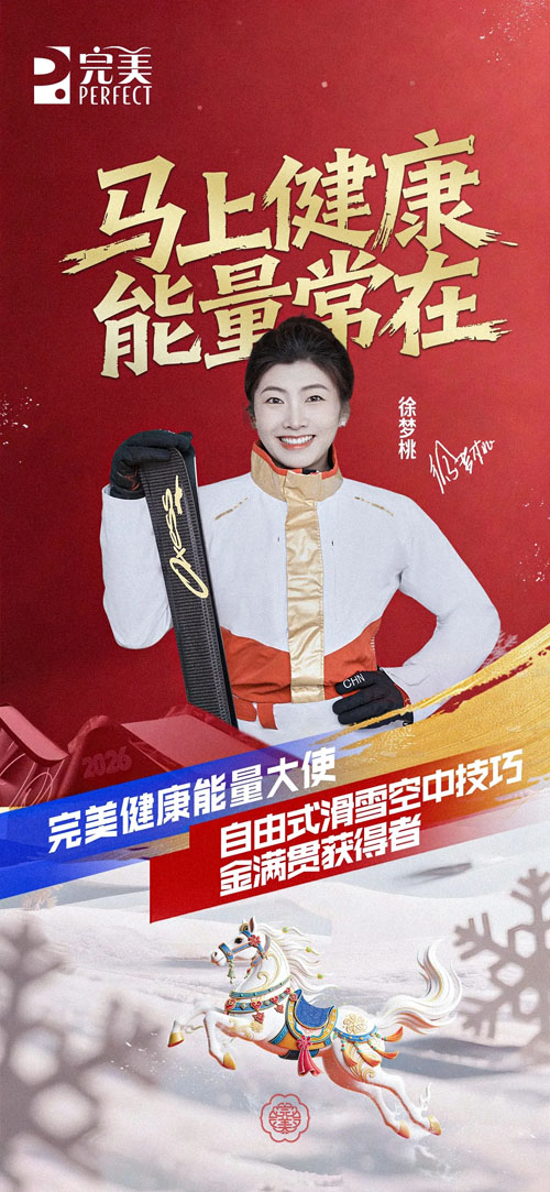 今日,完美(中国)有限公司(以下简称完美公司)正式官宣:自由式滑雪空中技巧金满贯获得者徐梦桃,在圆满履行“完美时光葆能量大使”使命后,正式升级成为“完美健康能量大使”,以“持久状态”为精神内核,共同开启一场面向全民的健康理念倡导,共赴马年新程。